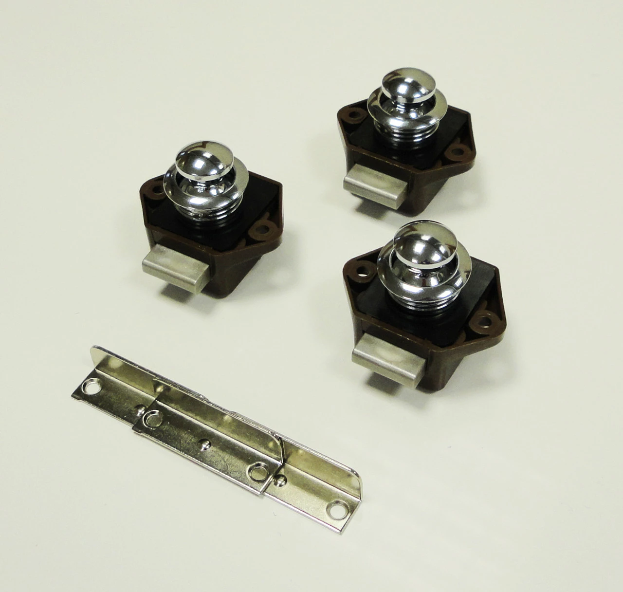 Mini Push Button Door Handle & Catch (Pack of 3)