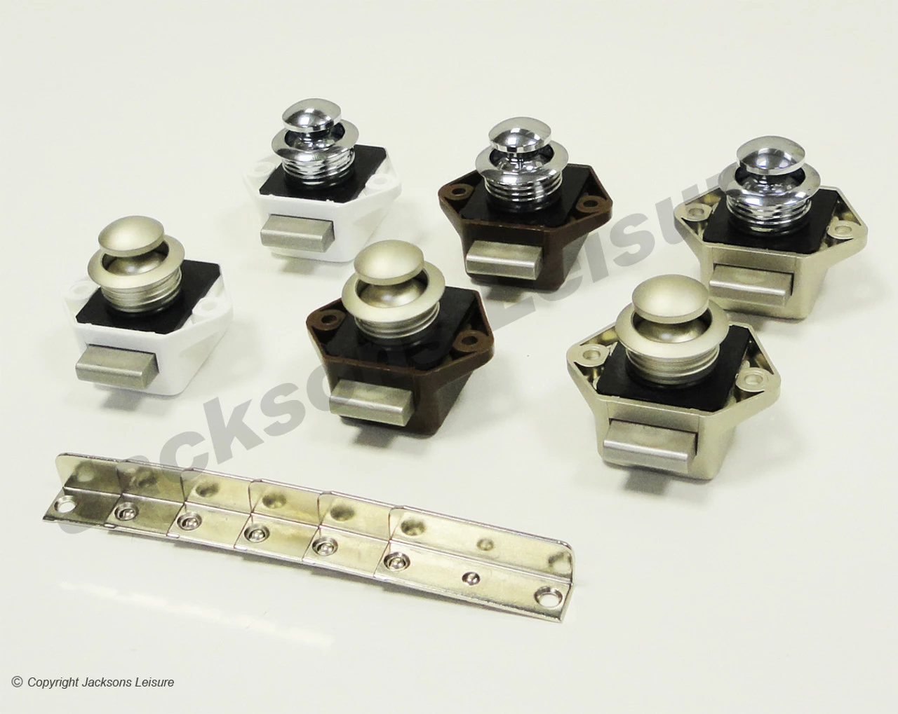 Available in a variety of colours and finishes to help match the décor of your vehicle, the Caravan Mini Push Button Door Handle and Catch is also very easy to use: Once pressed, a button will pop out to form a handle (at the same time as releasing the catch).