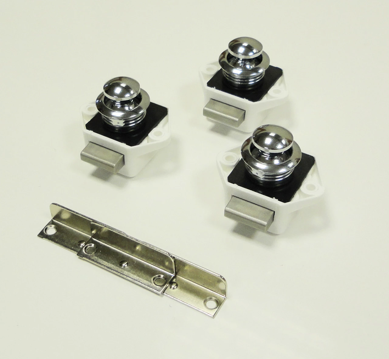 Please note: This item is sent out as a pack of 3 push button door handles & catches (of a single type). Please use the drop down menu at the top of the page to confirm your preference of push button type prior to checkout.