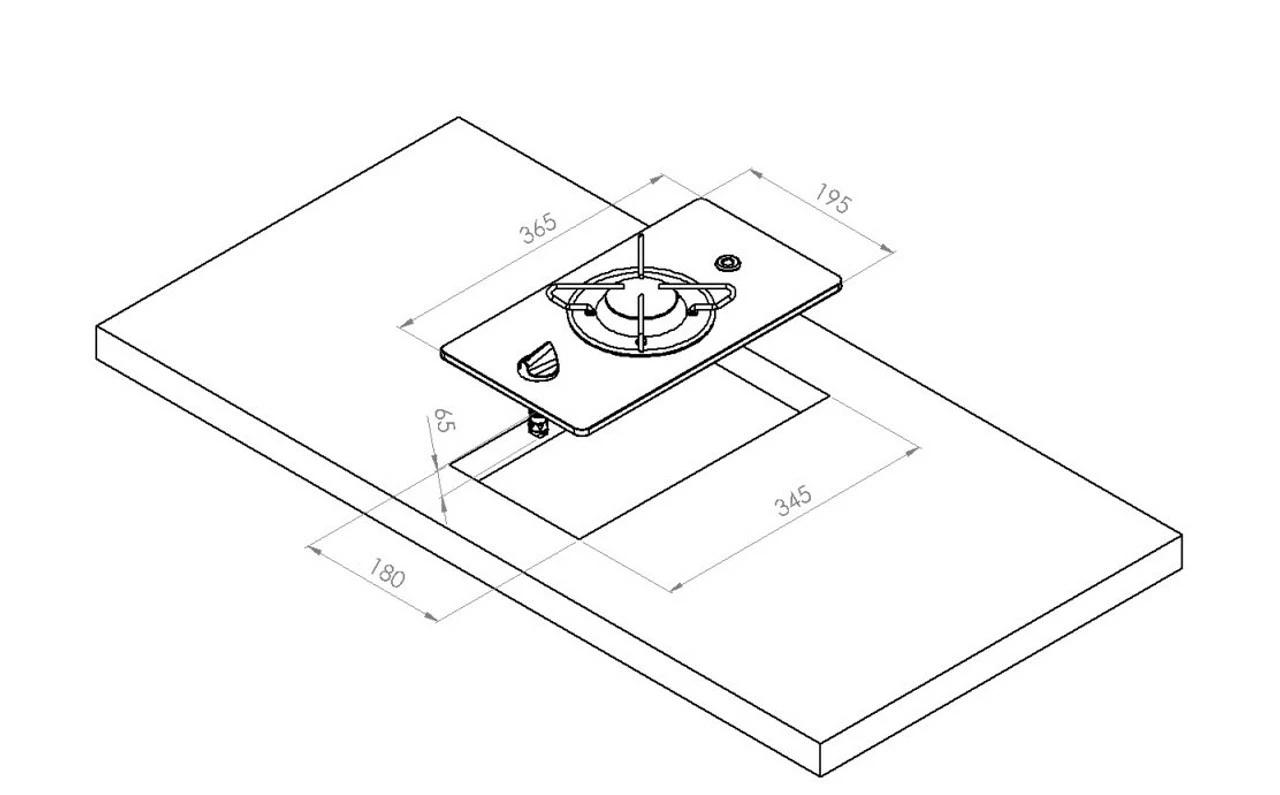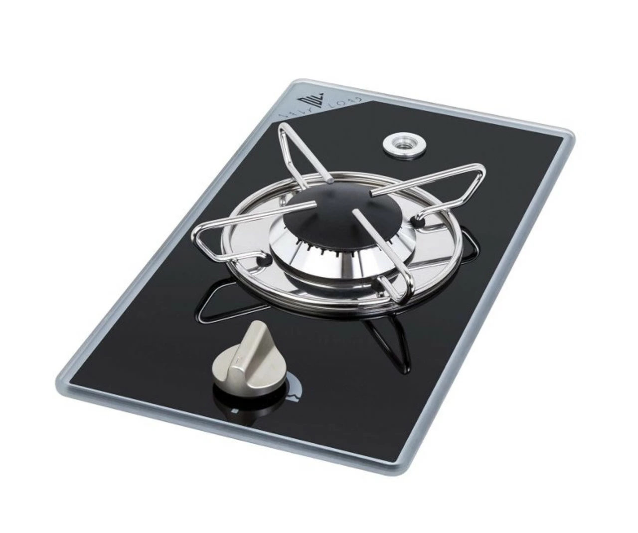 One single burner providing cooking space and versatility with the cooker surface set out long ways catering for a narrower kitchen layout, suitable for campervans, and marine vessels.