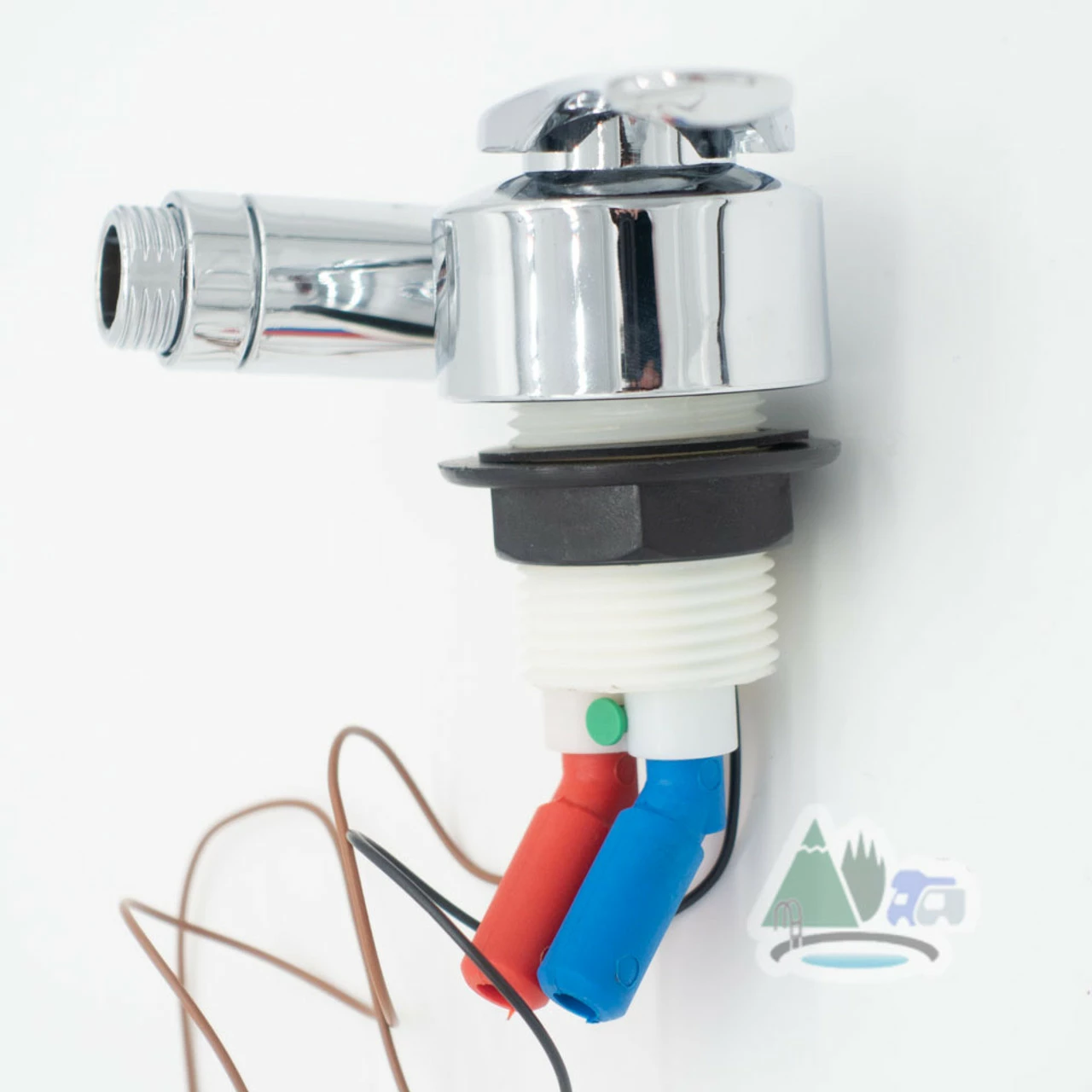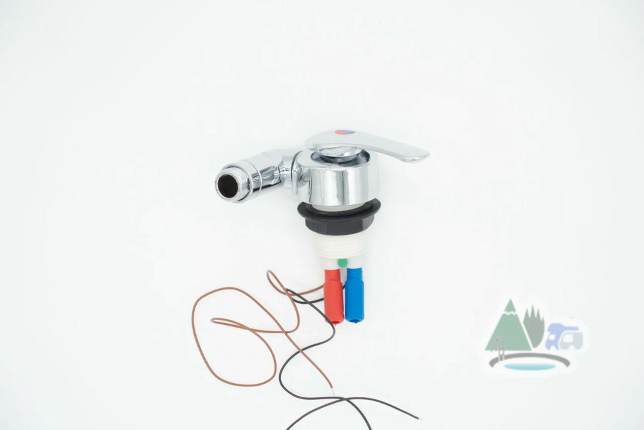 This mixer tap is perfect for shower installations. It features a smooth mixer tap head, with microswitch built-in, and a rotating threaded output onto which a standard 1/2″ BSP shower hose can be installed. Smooth 12mm stems allow you to easily install your water hoses, too.
