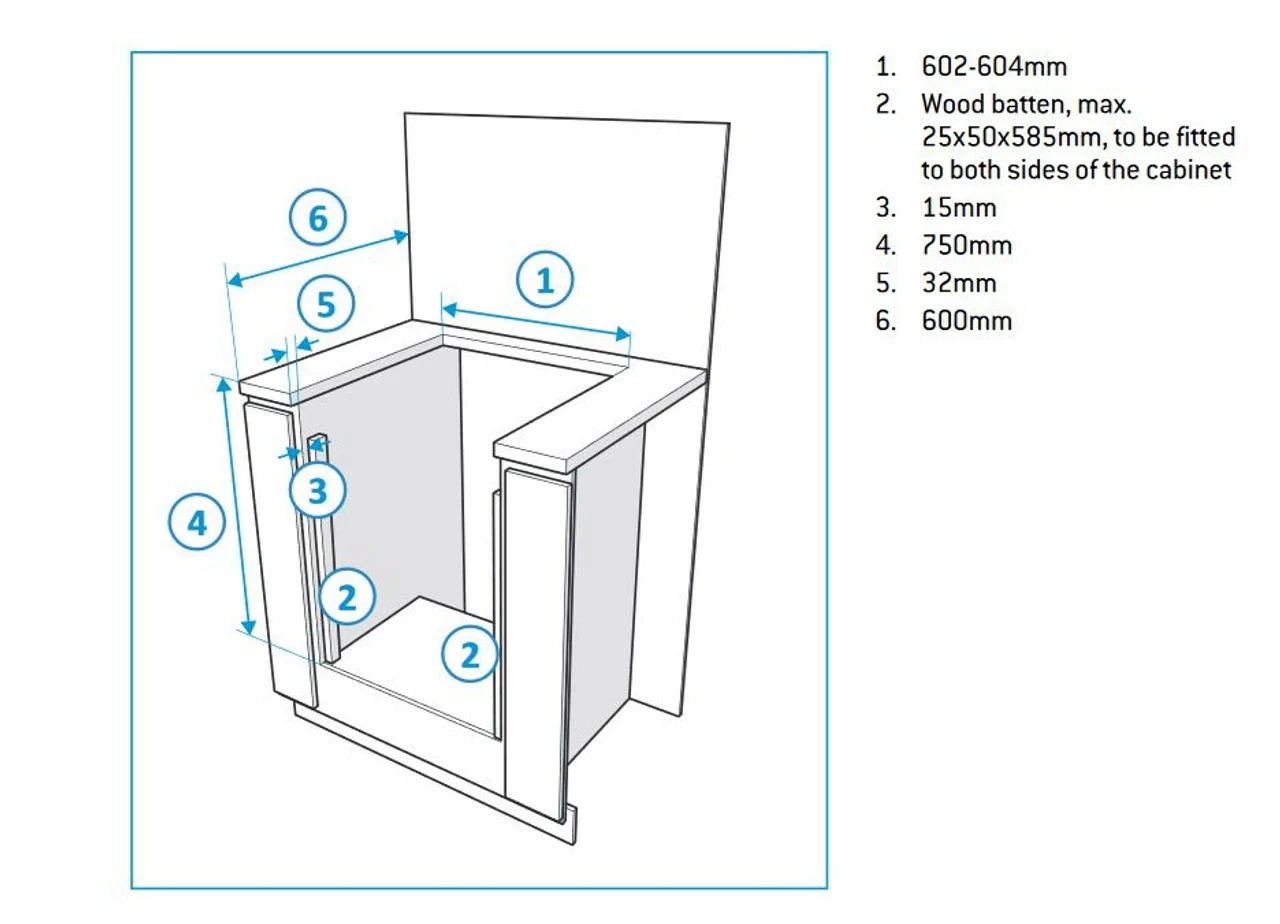 - H750 x W602 x D600 mm