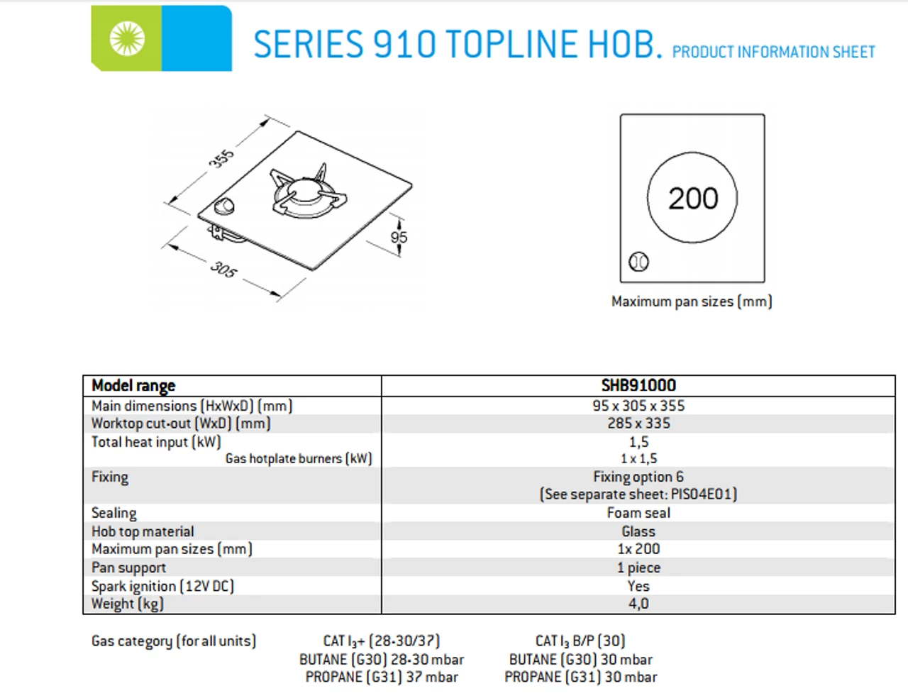 - Worktop recess dimensions: W285 x D355 mm